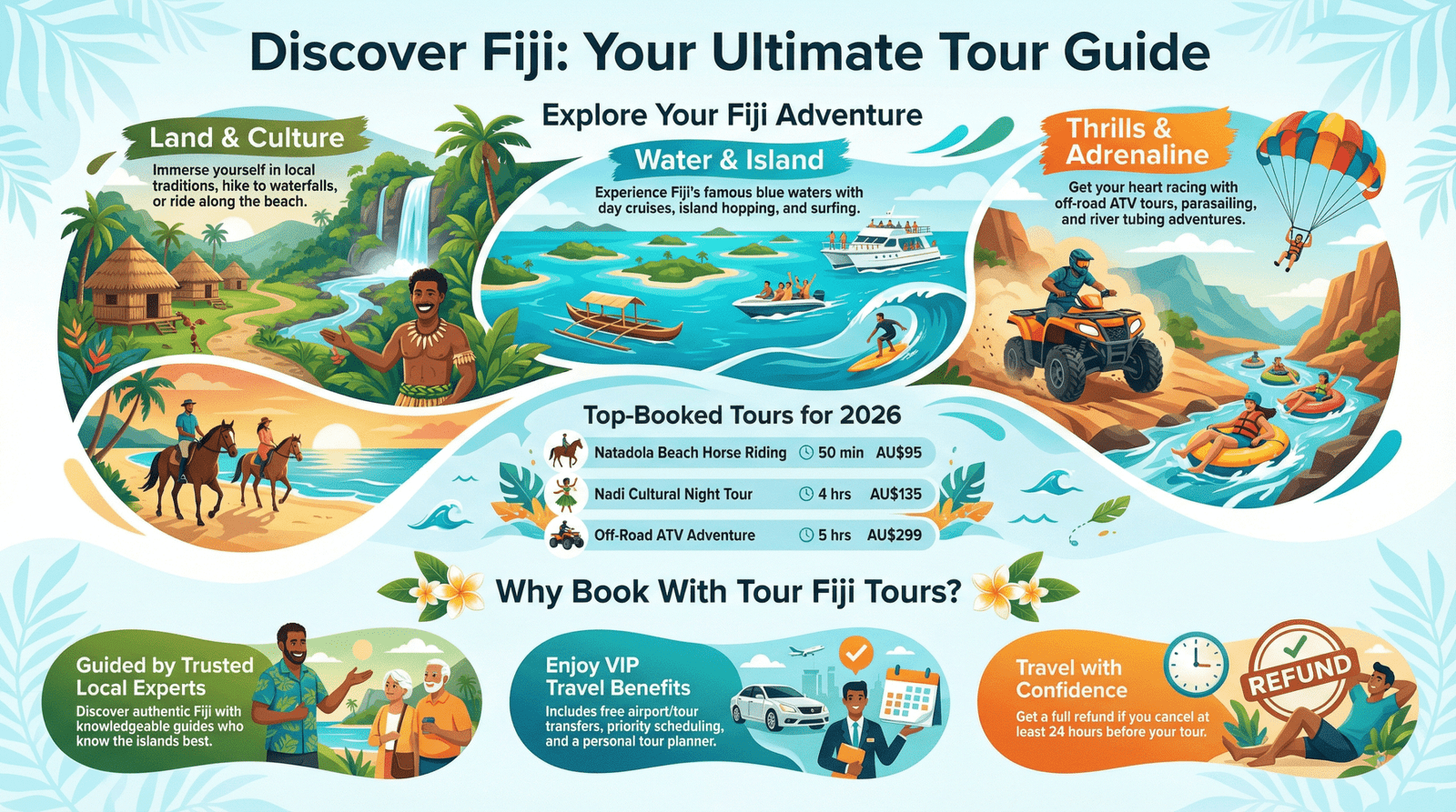 Booking a Fiji tour with us is simple and secure. Just browse our tour collection, select your preferred date and activity, and complete the online booking. You’ll receive instant confirmation and all necessary details for your trip.